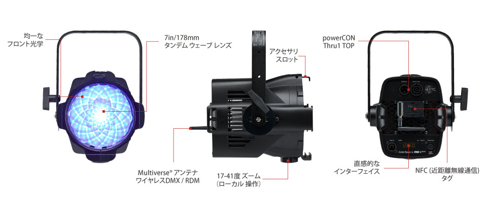 シンプルな操作性とハイクオリティーな品質を併せ持ち、低予算でも本物の演出照明を提供することが可能になります。調光卓から照明器具まで、全てをColorSourceファミリーで統一することで、効率と利便性が向上し、製品の力を最大限に発揮します。詳細は各機材紹介ページをご覧ください。