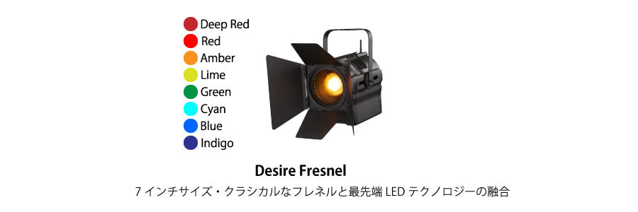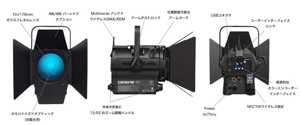 劇場で長年親しまれた白熱フレネルの長所を継承しつつ、次世代のカラーミキシングLED エンジンを搭載したクラシカルでありながら新しいLED フレネルライトです。13 ~ 55 度のフルズーム機能、Deep Red LEDを携えた LustrX8 カラーシステムや、City Theatrical 社の Multiverse ワイヤレスDMX/RDM システム、直感的な操作が可能なユーザーインターフェイスも搭載しています。
