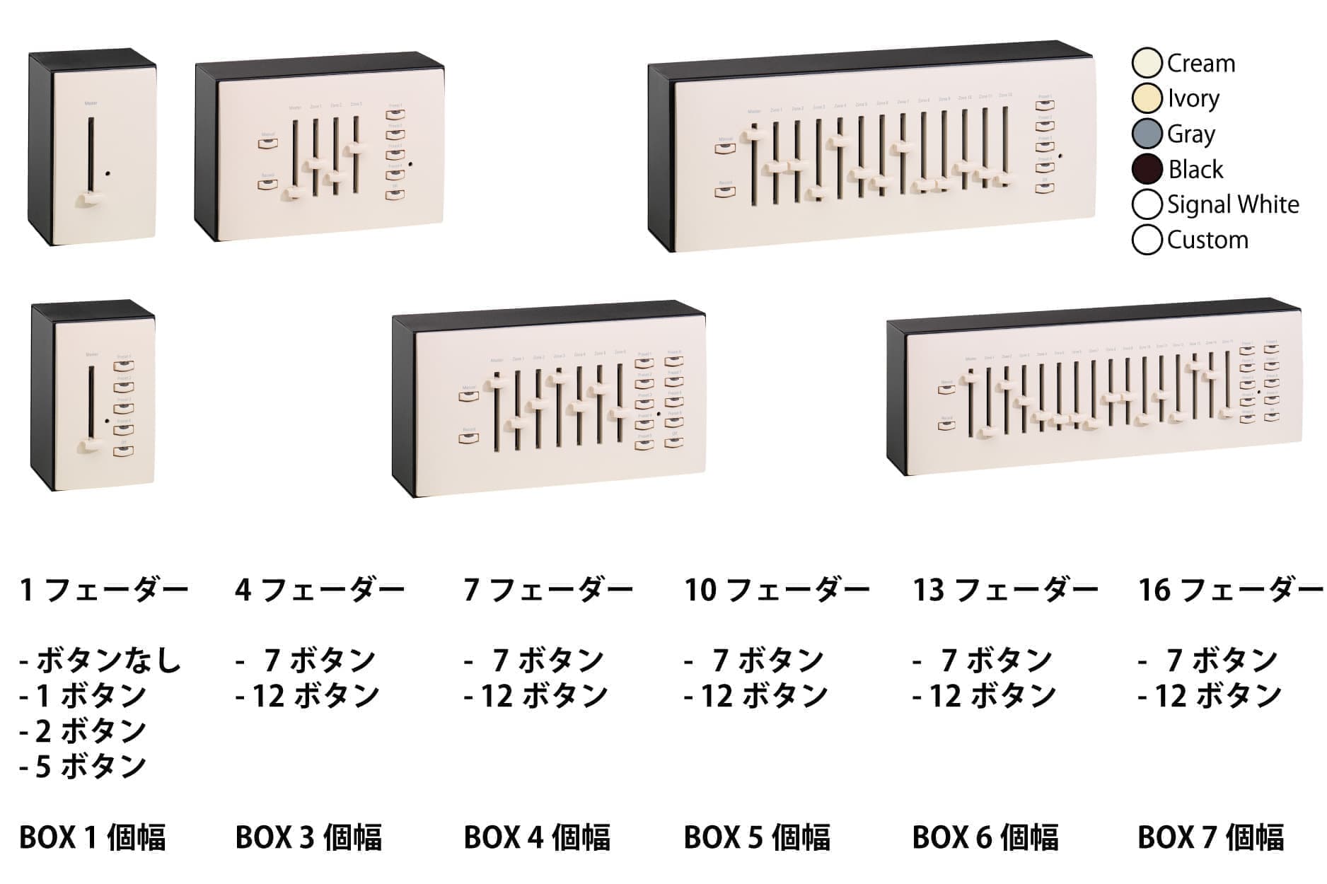 ボタン、フェーダー、キーロックを組み合わせた豊富なラインナップからお選びいただけます。