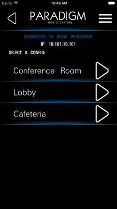 | 無線アクセスポイントに接続したUnison Paradigm システムの7インチタッチスクリーン ステーションを遠隔操作するアプリケーションです。 |