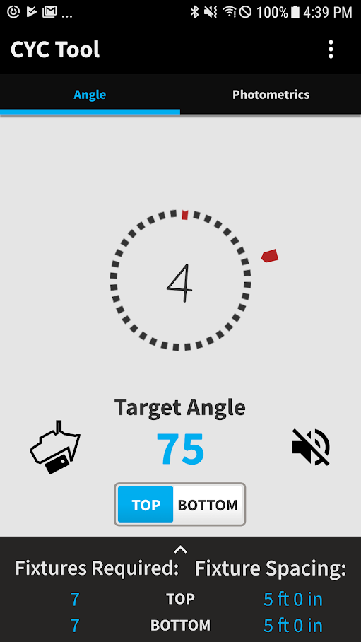 | CYCアダプターをご利用の場合に大変便利なアプリケーションのご案内です。 設置条件を入力すると、適性角度と設置台数が計算できる便利な無料スマートフォンアプリケーションです。カラーソースサイク、CYCアダプターを取り付けたソースフォーLEDやカラーソーススポットで、美しくホリゾントを染めるお手伝いをぜひ「CYC Tool」にお任せください。