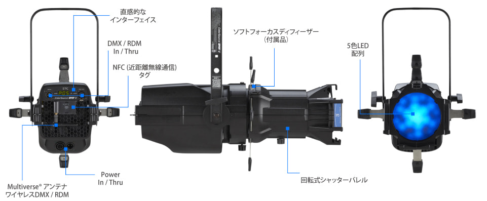 固定レンズシャッターバレルに取付 固定角度のレンズチューブを装着する事で、あらゆる設置場所やポジションでもその明るさと順応性を活かし、ロングスローや前明かりなど多様なライティングツールとしてご利用頂けます。 Source Four XDLTレンズ 5°、10°、14°、19°、26°、36°、50°、70° Source Four EDLTレンズ 19°、26°、36°、50° Source Four LED専用レンズ 50° Source Four 通常レンズ 5°、10°、14°、19°、26°、36°、50°、70°、90° |
