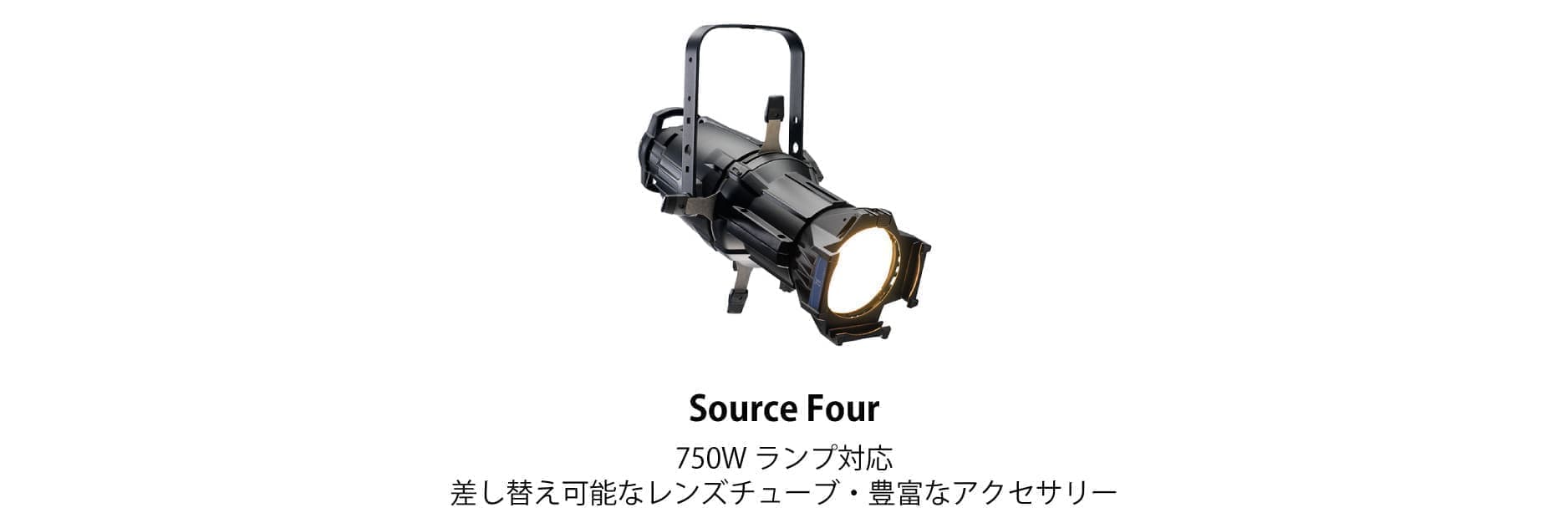 固定レンズシャッターバレルに取付 固定角度のレンズチューブを装着する事で、あらゆる設置場所やポジションでもその明るさと順応性を活かし、ロングスローや前明かりなど多様なライティングツールとしてご利用頂けます。 Source Four EDLTレンズ 19°、26°、36°、50° Source Four 通常レンズ 5°、10°、14°、19°、26°、36°、50°、70°、90° |